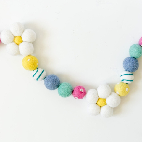 Spring Pastel Rainbow Daisy Wool Felted Garland with Wool Felt Ball Garland Easter Baby Shower Decoration for Christmas