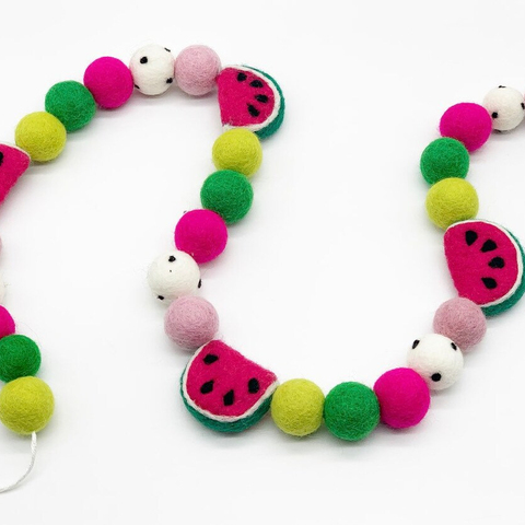 Handmade Felted Pink Wool Watermelon Wool Felt Garland with Wool Ball Garland for Party Decor Christmas Felt Fruit Garlands